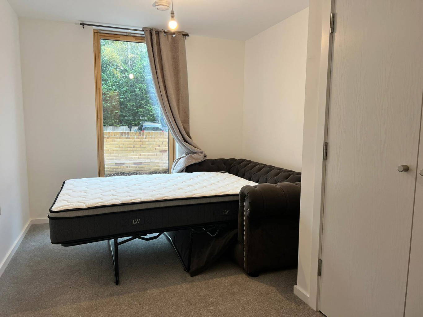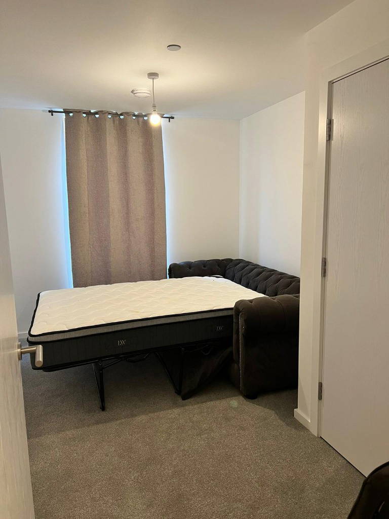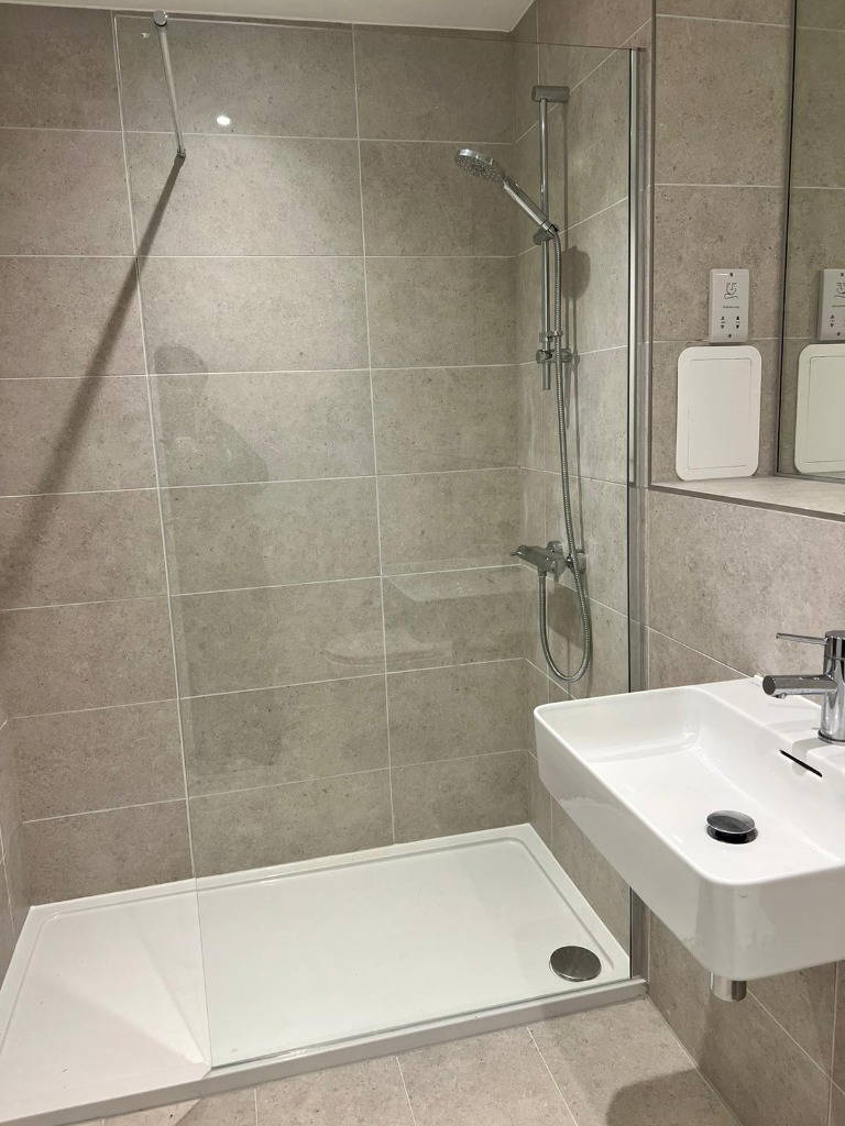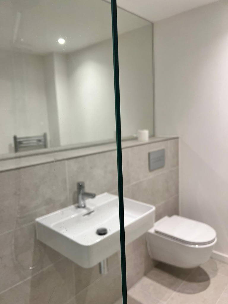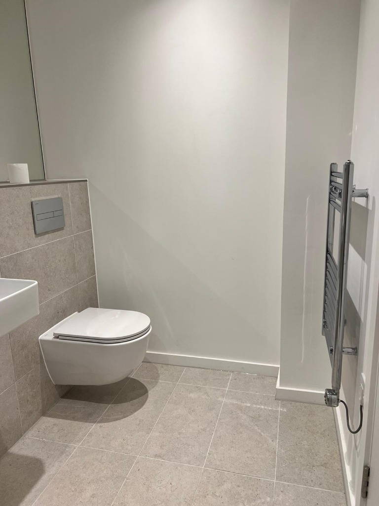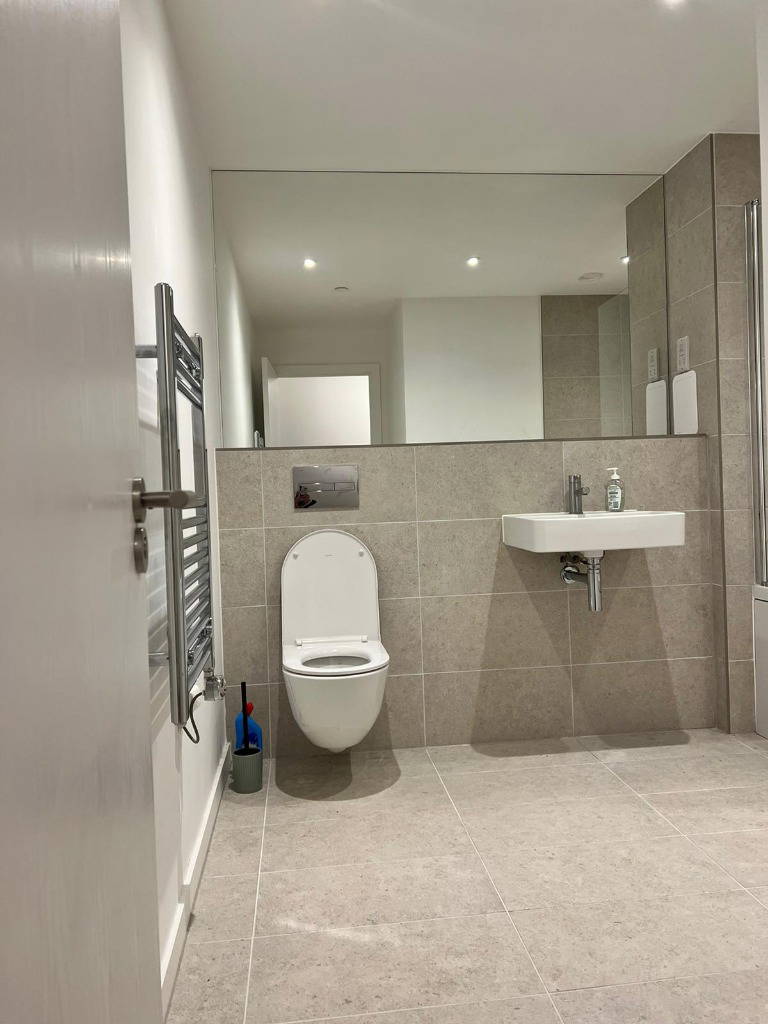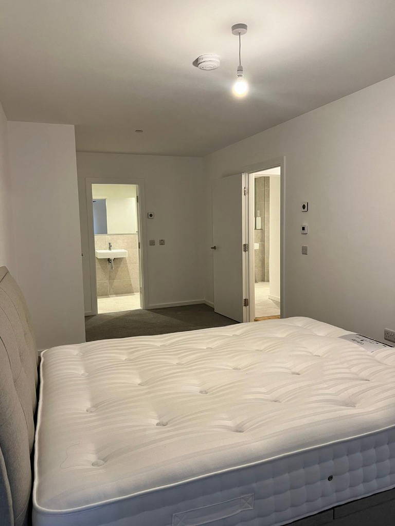 Both bedrooms, adorned with plush carpeting, offer a peaceful retreat, bathed in natural light and equipped with spacious fitted wardrobes. The master bedroom boasts an ensuite featuring a fully tiled shower, sleek basin, and a modern toilet. The spa-like family bathroom, complete with a shower over bath, adds a touch of luxury to your daily routine.